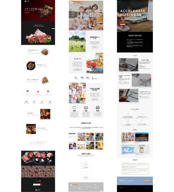 Wixやペライチ、Jimdoなどのサービスのテンプレクオリティのサイトではなく、以下のようなあなたのイメージ通りのサイトを制作いたします。